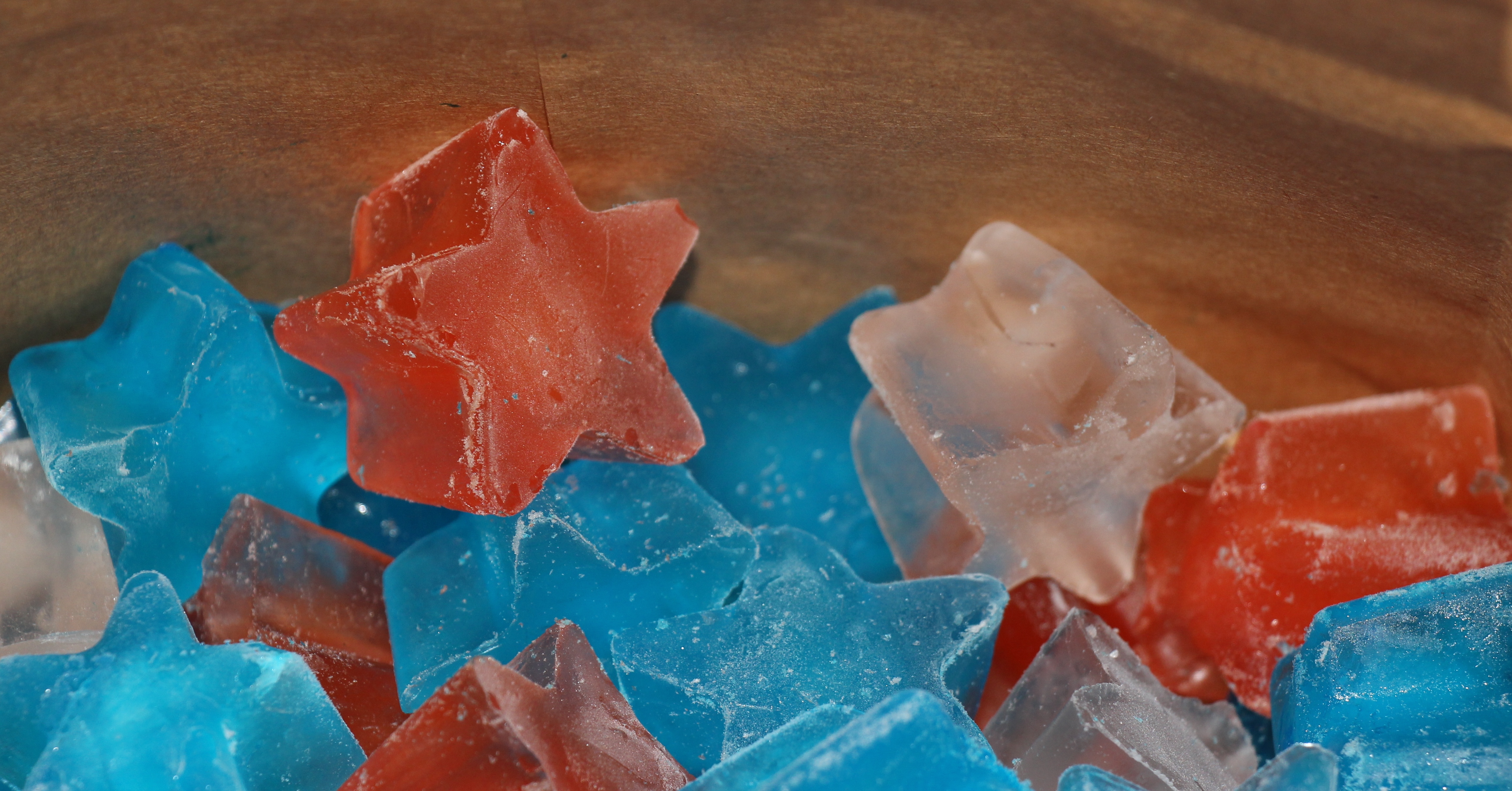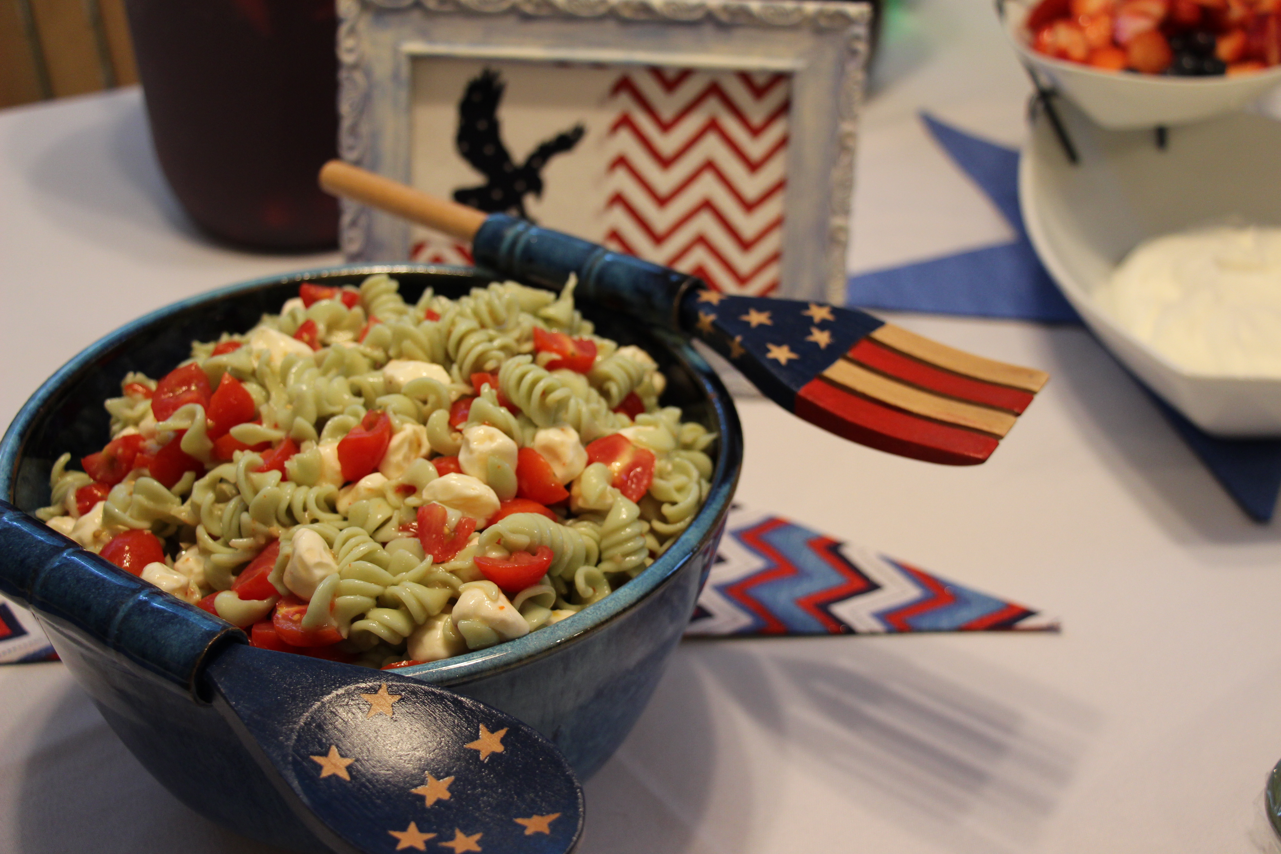This year, it was my mission to make everything, and I mean everything, red, white, and blue! I dyed water red and blue for star shaped ice cubes, pasta blue for pasta salad, pizza dough blue for personal pizzas, angel food cake fell victim to my red and blue dye, rice krispie treats were colored and whoopie pies were made red and blue too!