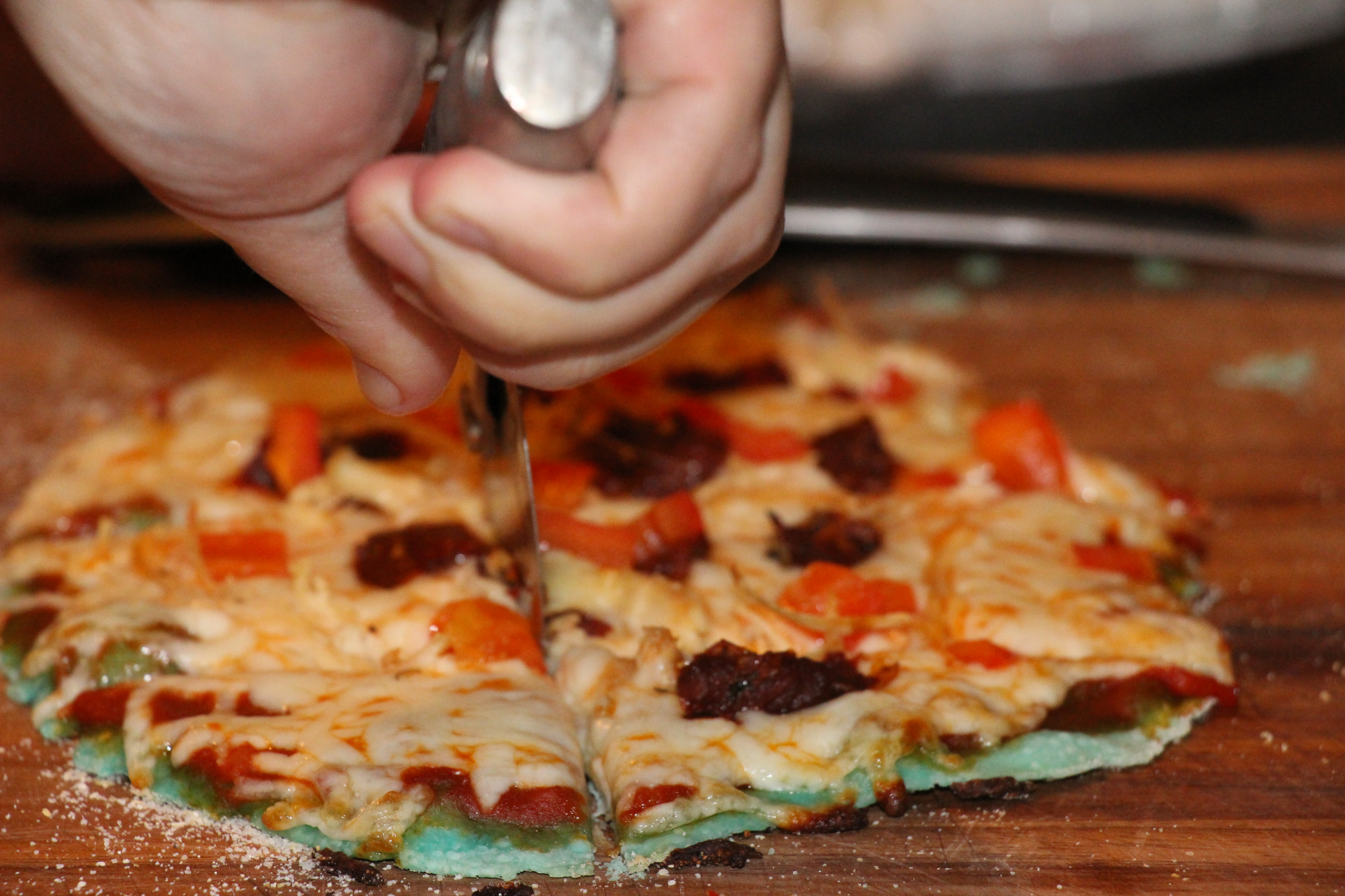 I was nervous that once my pizza dough was cooked it would also turn green, but I was pleasantly surprised.