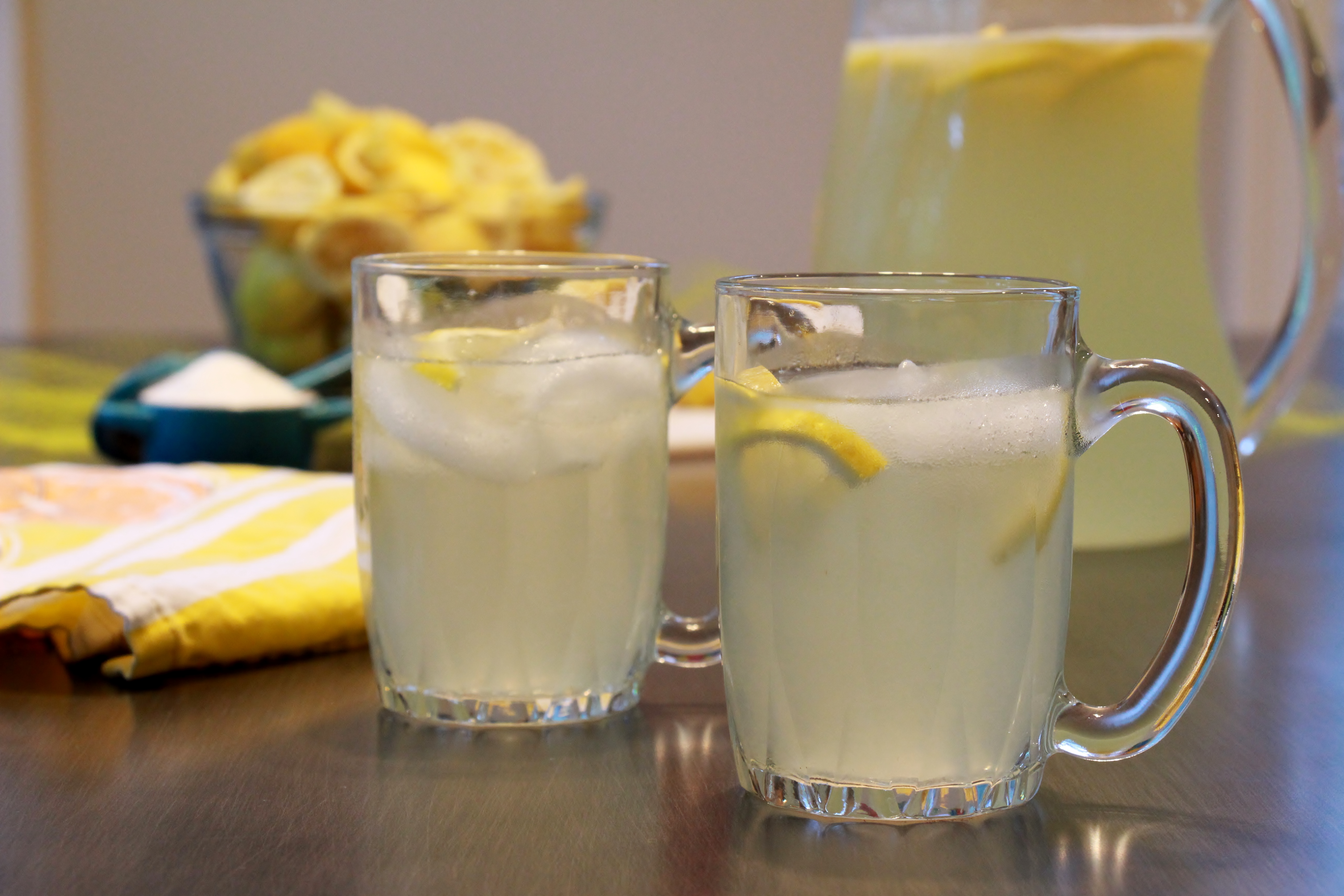 - Juice lemons. 4 lb should yield you 2 C of juice. Strain lemon juice into a pitcher. Stir in remaining 8 C water and simple syrup.