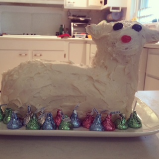 IMG_4550And of course, I had to make my grandmother’s Easter pound cake. Mom finally found her lamb mold – after buying a new one – and gave it to me. So this year I went super traditional and made the cake in the shape of a lamb. It was definitely more nerve-wracking than doing it as a bundt!