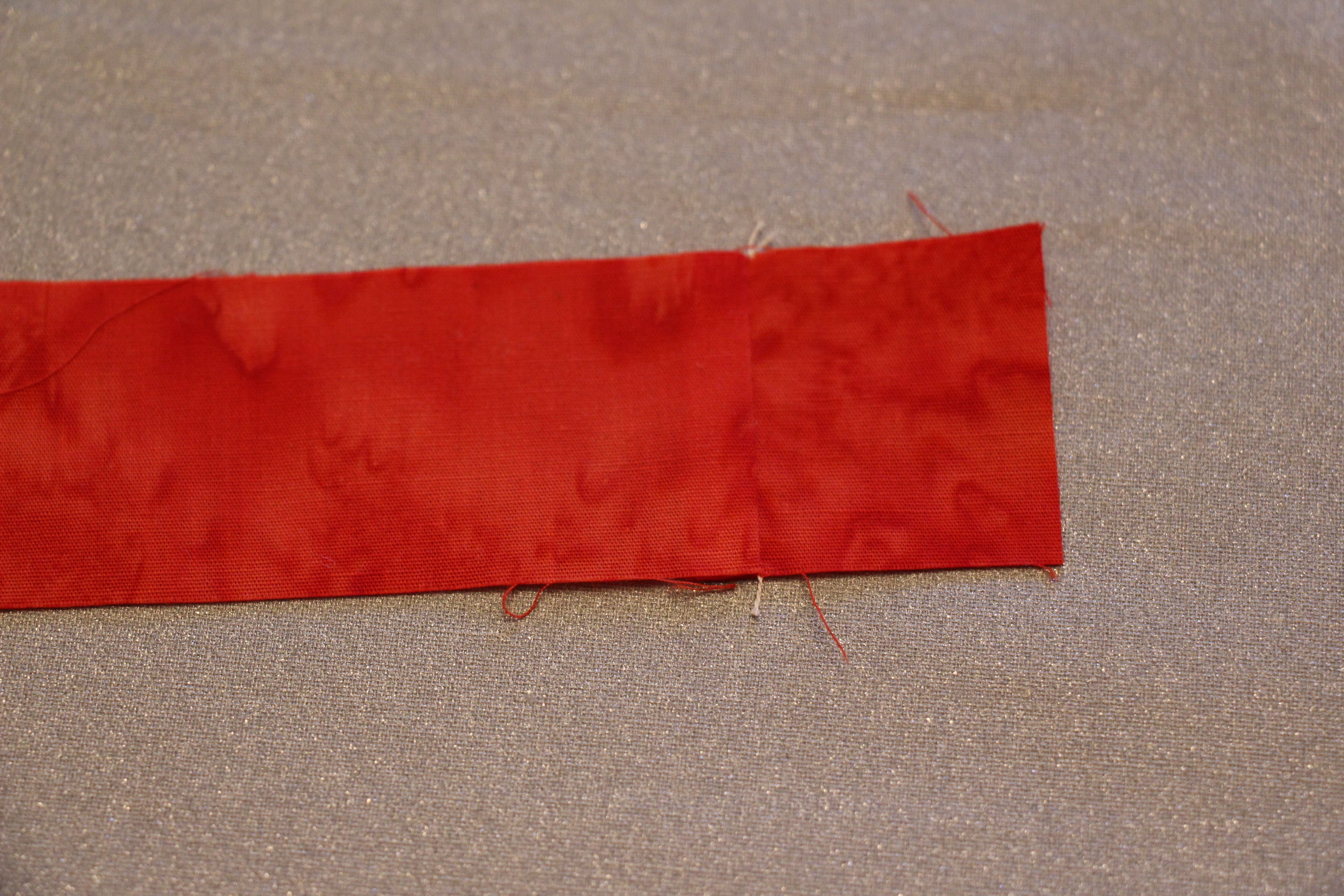 Measure your completed block. Do not cut your sashing fabric until you’ve completed all of your quilt blocks. Cut your sashing fabric into strips with a length of your block size and width of your desired sashing thickness plus ½”. For this tutorial, I’m doing a finished sashing width of 1” so these strips are cut at 1 ½”. You will also need to cut 1 ½” squares (whatever size sashing you’re using). These squares are “keystones”, you could do them as a miniature block or a different color or use the same sashing fabric like I did. These squares will ensure straight lines throughout your quilt.